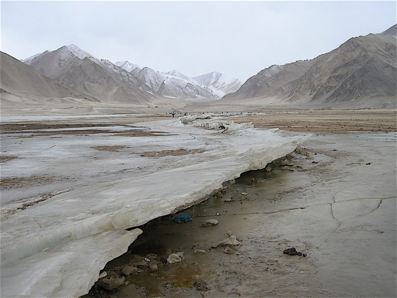A little uneasy, Chris and I carried on walking across the ice-filled river valley. I started a rambling story about my scary experiences in Kashmir, and how I’d run into a risky situation after being out after curfew. Perfect timing, as just then a police jeep came bumping along a dirt road toward us.
