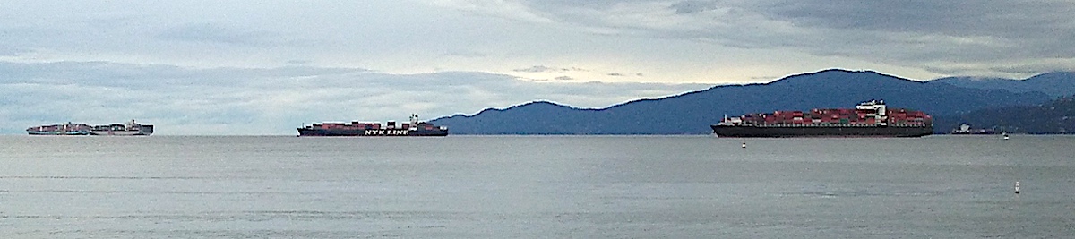 7. Counting containerships. In another life, I edited shipping magazines and still check out all the ships at the Port of Vancouver. Containerships typically go straight to a berth, so whenever they’re kept waiting at anchor, it means the supply chain is seriously out-of-whack. Last month, I counted five one day.